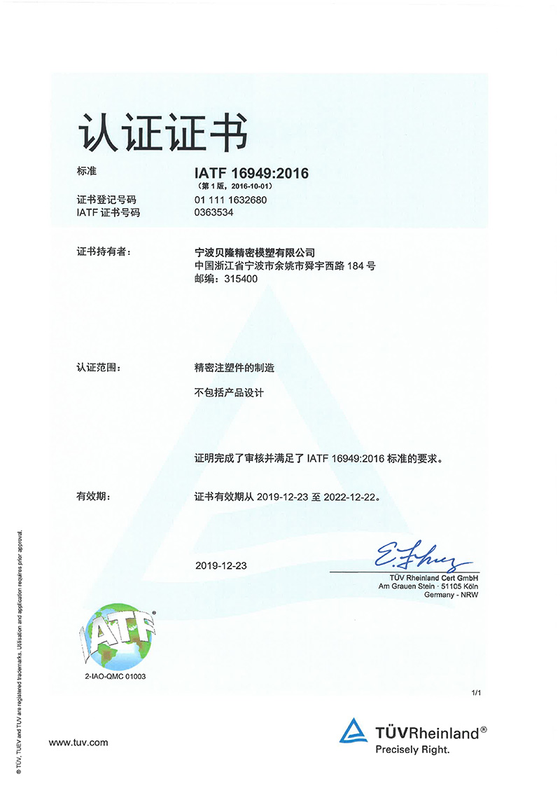 貝隆精密科技股份有限公司(股票代碼:301567)成立于2007年,坐落于中國模具之鄉(xiāng)、浙東名城浙江省余姚市,公司是專業(yè)從事精密注塑、沖壓、埋入成型、模具研發(fā)與制造的高新技術企業(yè)。被評定為國家制造業(yè)單項冠軍、國家級專精特新小巨人企業(yè)、國家知識產權優(yōu)勢企業(yè)。